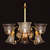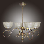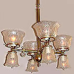 The antique reproduction chandeliers and other vintage style ceiling lighting fixtures you will see below are available as they are. These lights can also be designed in many ways, other than how they are pictured. As with all our light fixtures, at CLC we start with solid brass. To achieve the period or style you are after, you may change or customize your selections in metal color, glass shade, holder style, tubing style, backplate, number of arms, glass direction, swivels and more, all the way down to the smallest finial, whether Victorian, Colonial, Arts and Crafts, Mission, Art Deco or other antique styles from the 1800's and 1900’s.