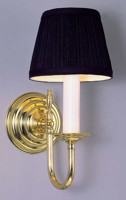 Vibrant in polished brass, this lovely Colonial style wall sconce is great for the hall, library, study or powder room. Simple and refined.
