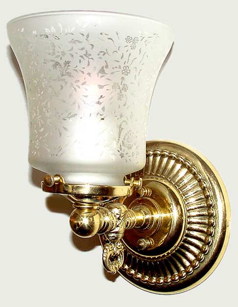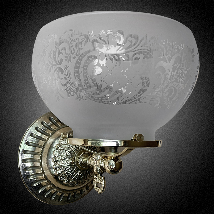 A few modifications and we have a more Victorian style sconce with larger 4" holder & French acid etched glass at $289 and in Nickel at $463!