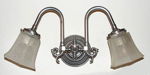 Is satin nickel your thing? Then perhaps this two light is just your style! Shown with Hexagonal acid etched shades, it definitely has antique art deco style!